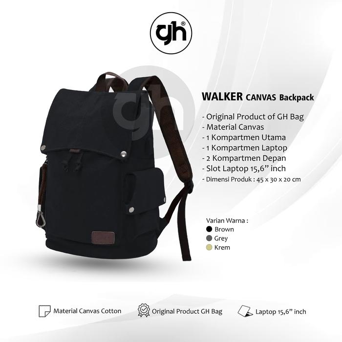 TERLARIS GHBAG TAS RANSEL UNISEX WALKER CANVAS BACKPACK SEKOLAH WANITA CREAM