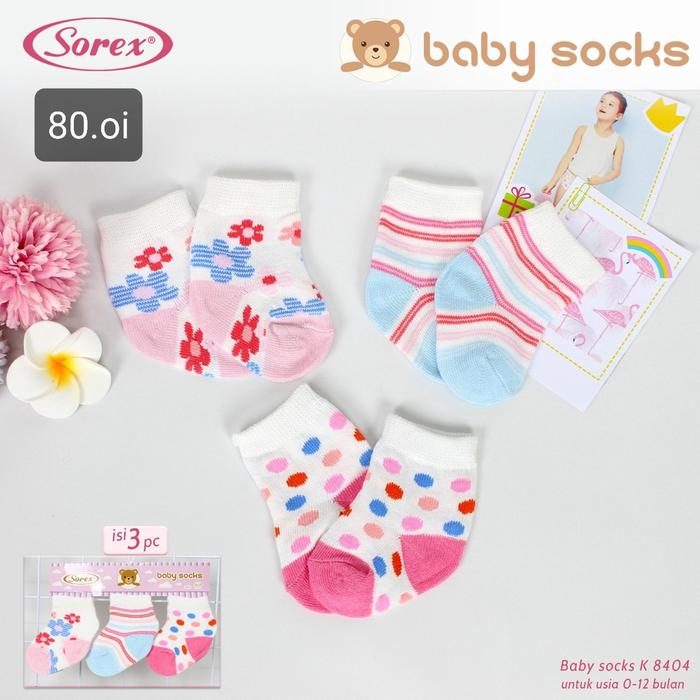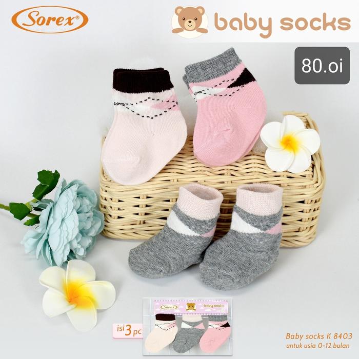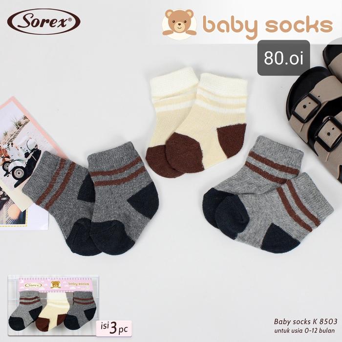 TERLARIS SOREX 3 PASANG BABY SOCKS KAOS KAKI BAYI KATUN LEMBUT 0 12 BULAN K8501