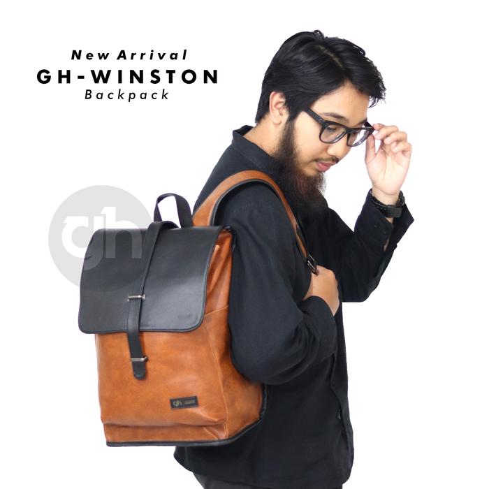 TERLARIS GHBAG TAS RANSEL KULIT WINSTON BACKPACK TAS KULIT PRIA WANITA AESTHETIC TAS LAPTOP 14 INCH SEKOLAH BROWN