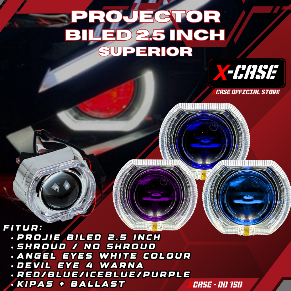 X-Case Biled Superior Projector 2.5 Inch 4 Warna Devil All Weather Shroud Putih Paket Bundling DD150