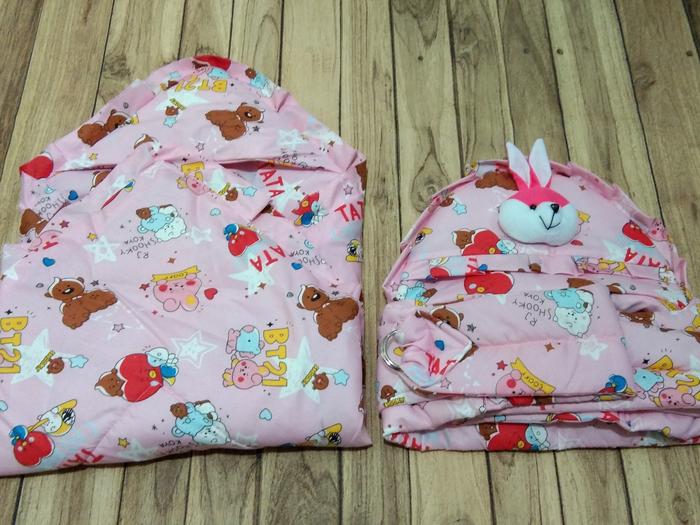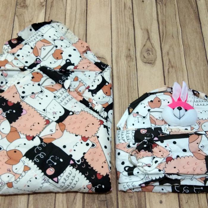 TERLARIS SET GENDONGAN BAYI SAMPING BONEKA DAN SELIMUT GRATIS TAS MIKRO PERLENGKAPAN KASUR CREAM