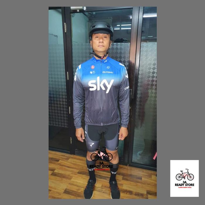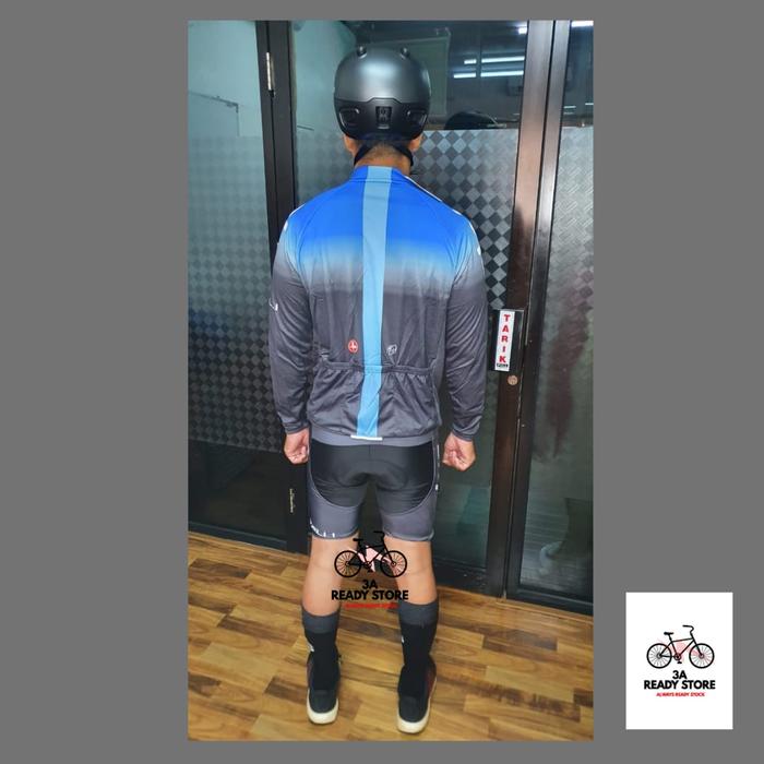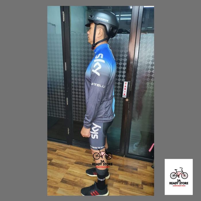 TERLARIS BAJU LENGAN PANJANG SEPEDA JERSEY SET SKY & CELANA BIB 9D GEL L
