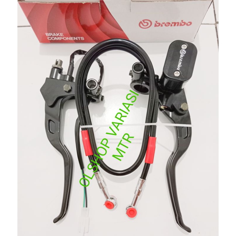 handle master rem sepasang model tabung kotak+ selang rem depan 95cm serat hitam semua motor