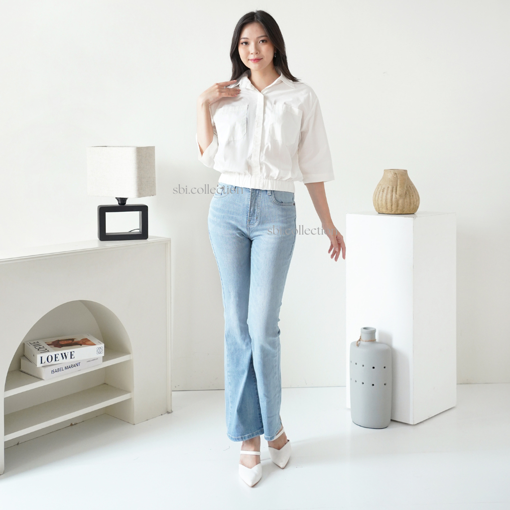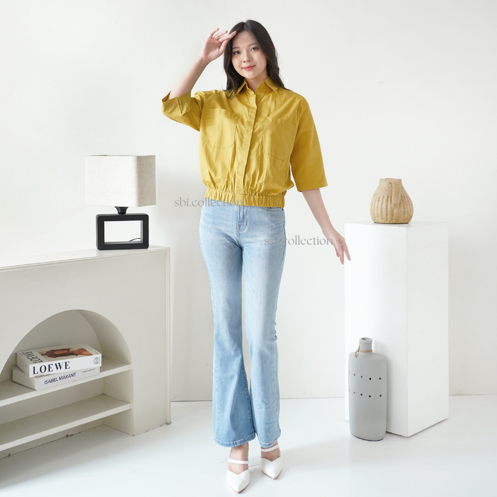 TIARA BASIC KOREAN COTTON SHIRT | ATASAN KEMEJA BLOUSE WANITA MOTIF POLOS KERAH V TERBARU KEKINIAN 2024 S M L