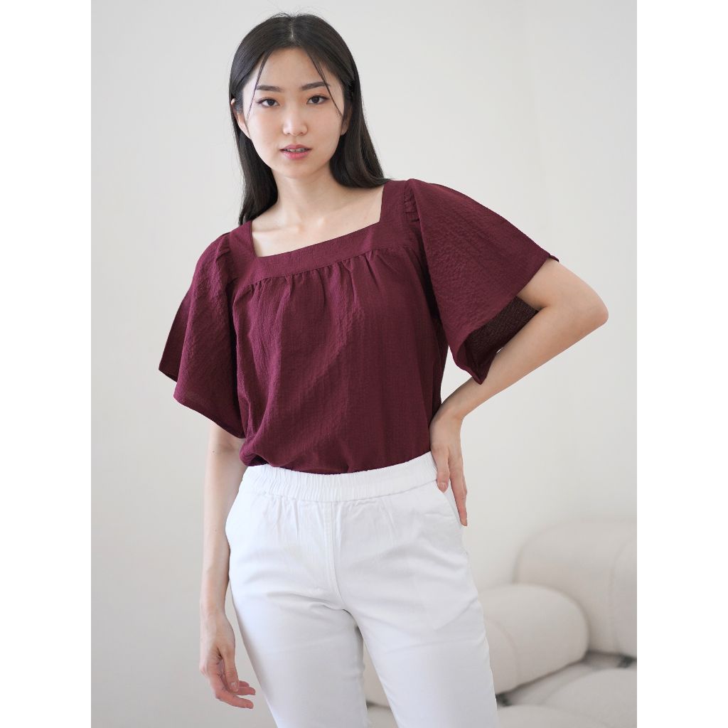 MS DAISY KYRA T0P WITH FLUTTER SLEEVE ATASAN BLOUSE WANITA KOREA