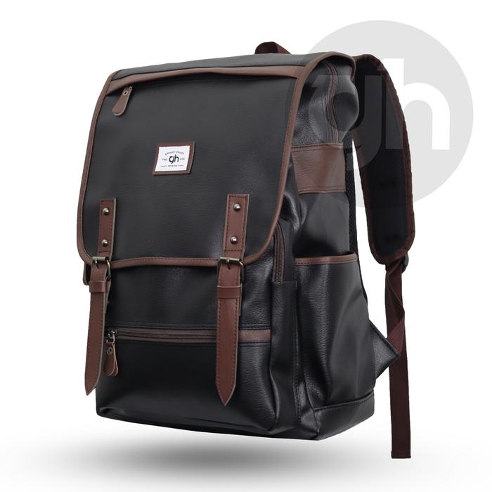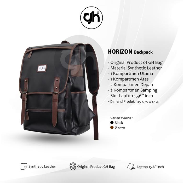 TERLARIS GHBAG TAS RANSEL KULIT PU TAS LAPTOP KERJA SEKOLAH KULIAH HORIZON BACKPACK PRIA COKLAT