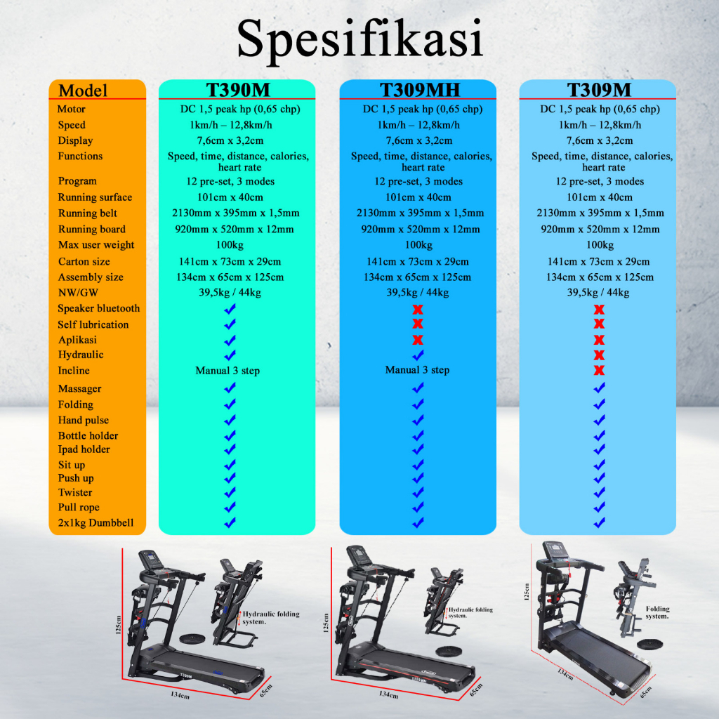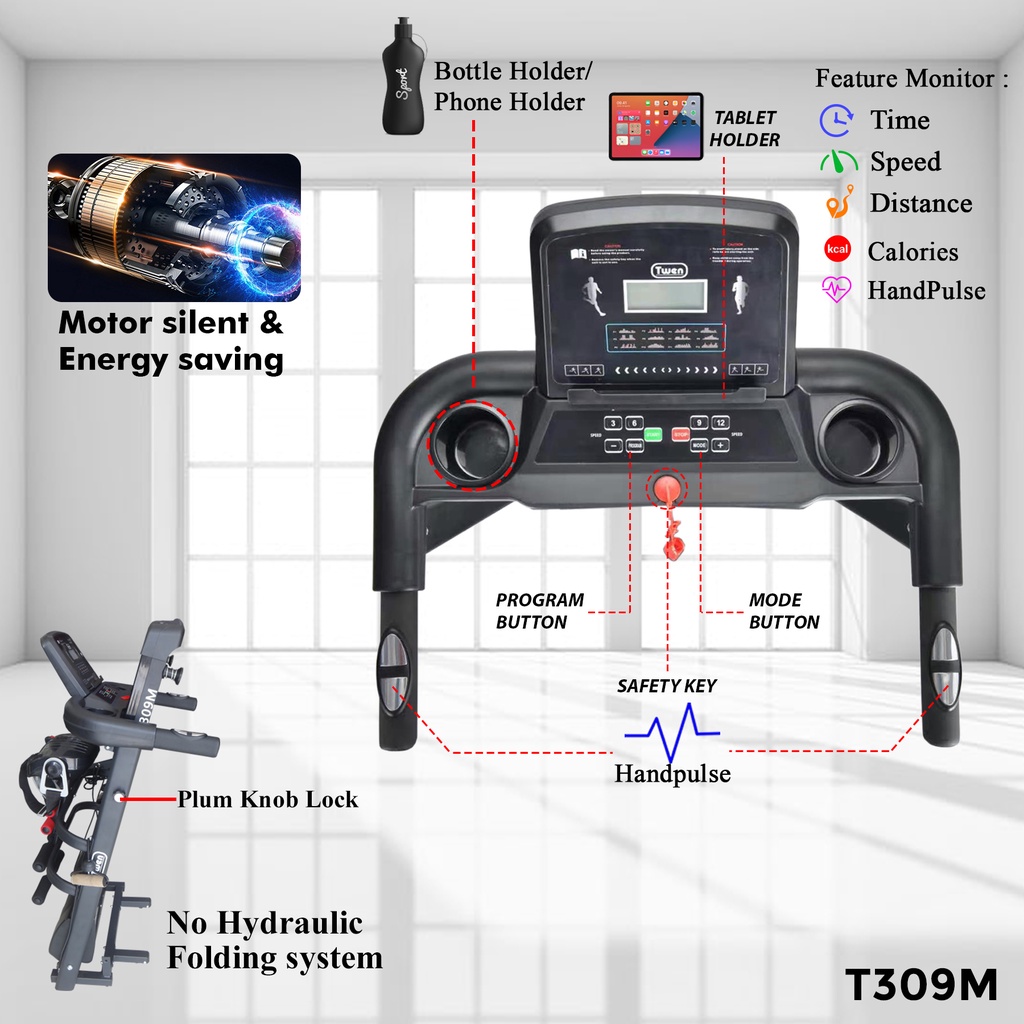 Twen T309M T390M Treadmill Portable / Treadmill Electric Low Watt / Treadmill Elektrik Alat Olahraga
