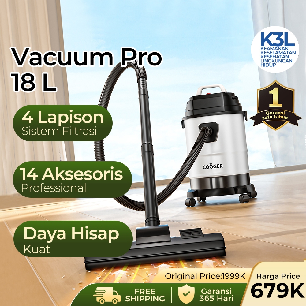 COOGER Electric vacuum Cleaner wet and dry penyedot debu rumah 18L Penghisap Debu Serbaguna