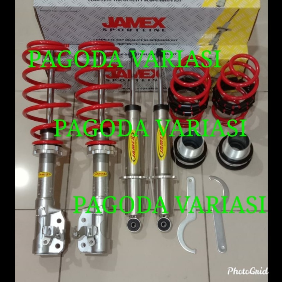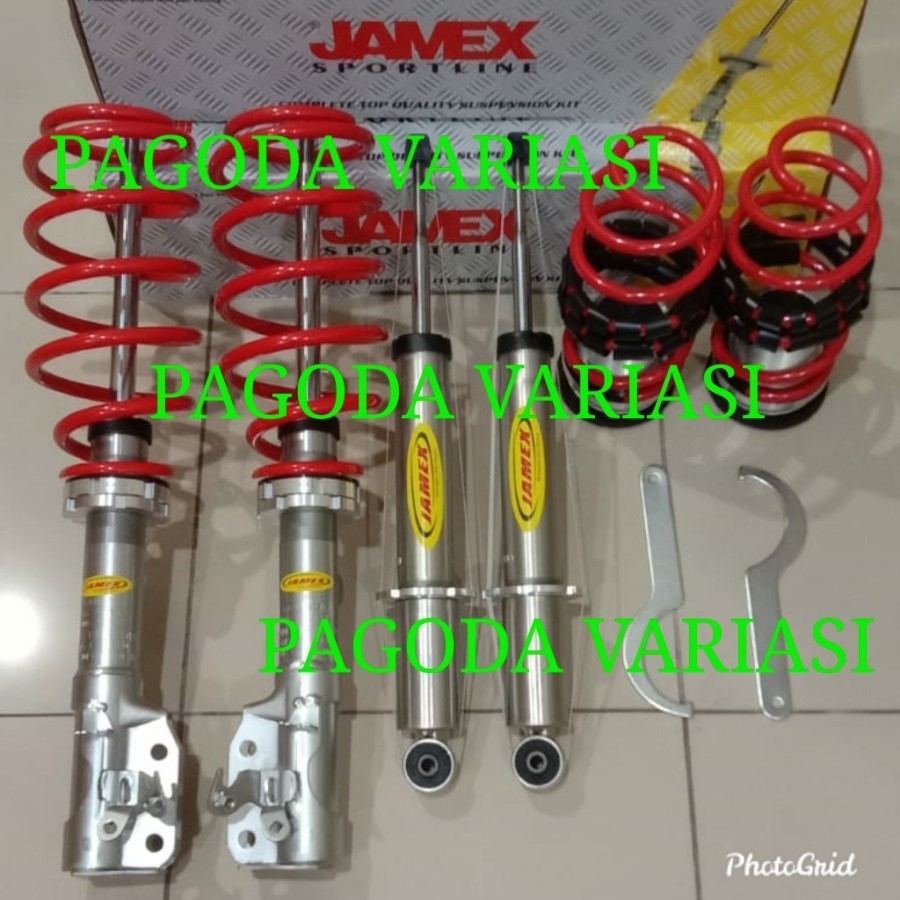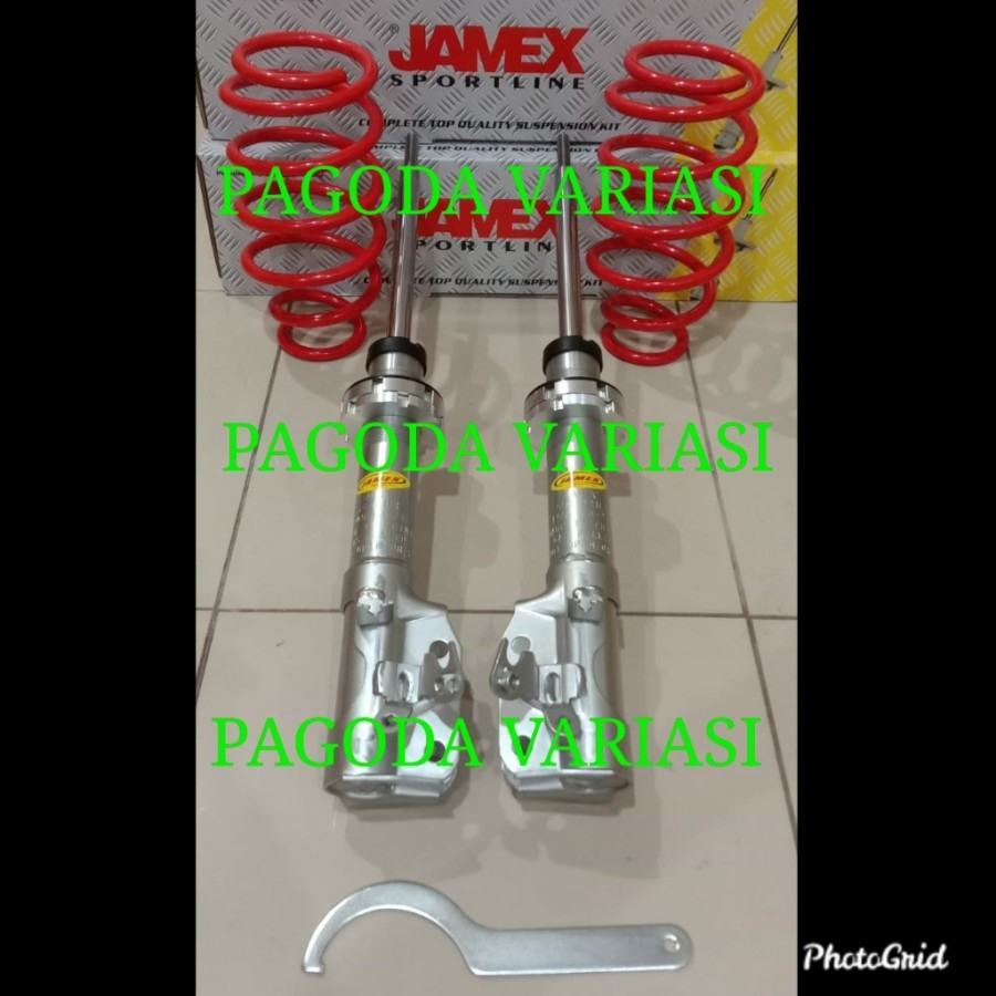 PAKET SHOCK COIL OVER JAMEX PREMIUM ADJUSTABLE CEPER/STD HONDA BRIO DEPAN-BELAKANG 8PCS MODEL STELL DRAT BODY SHIFT ORIG