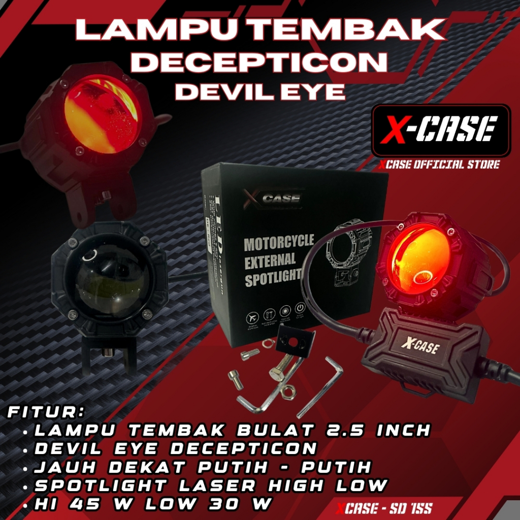 X-Case Lampu Tembak Bulat Decepticon 2.5 Inch Plus Devil Eye Hi Low Putih Putih SD 155