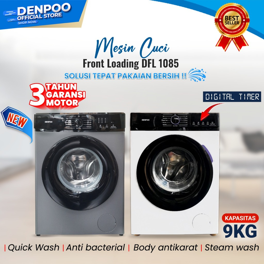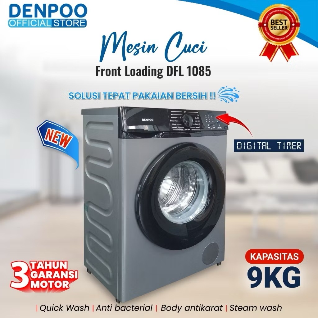 Denpoo Mesin Cuci Front Loading 1 Tabung DFL-1085 (9KG)