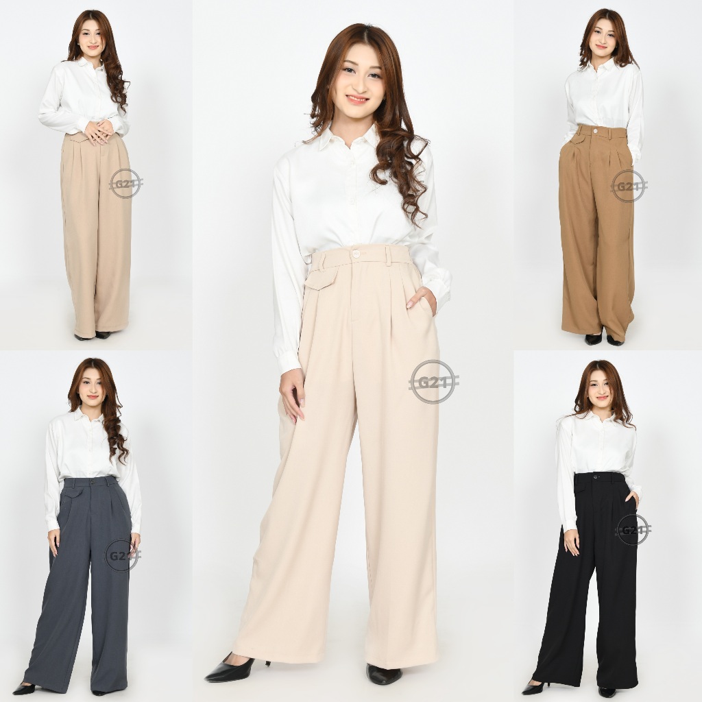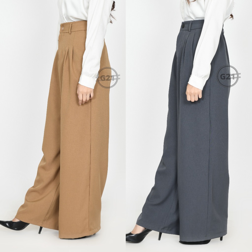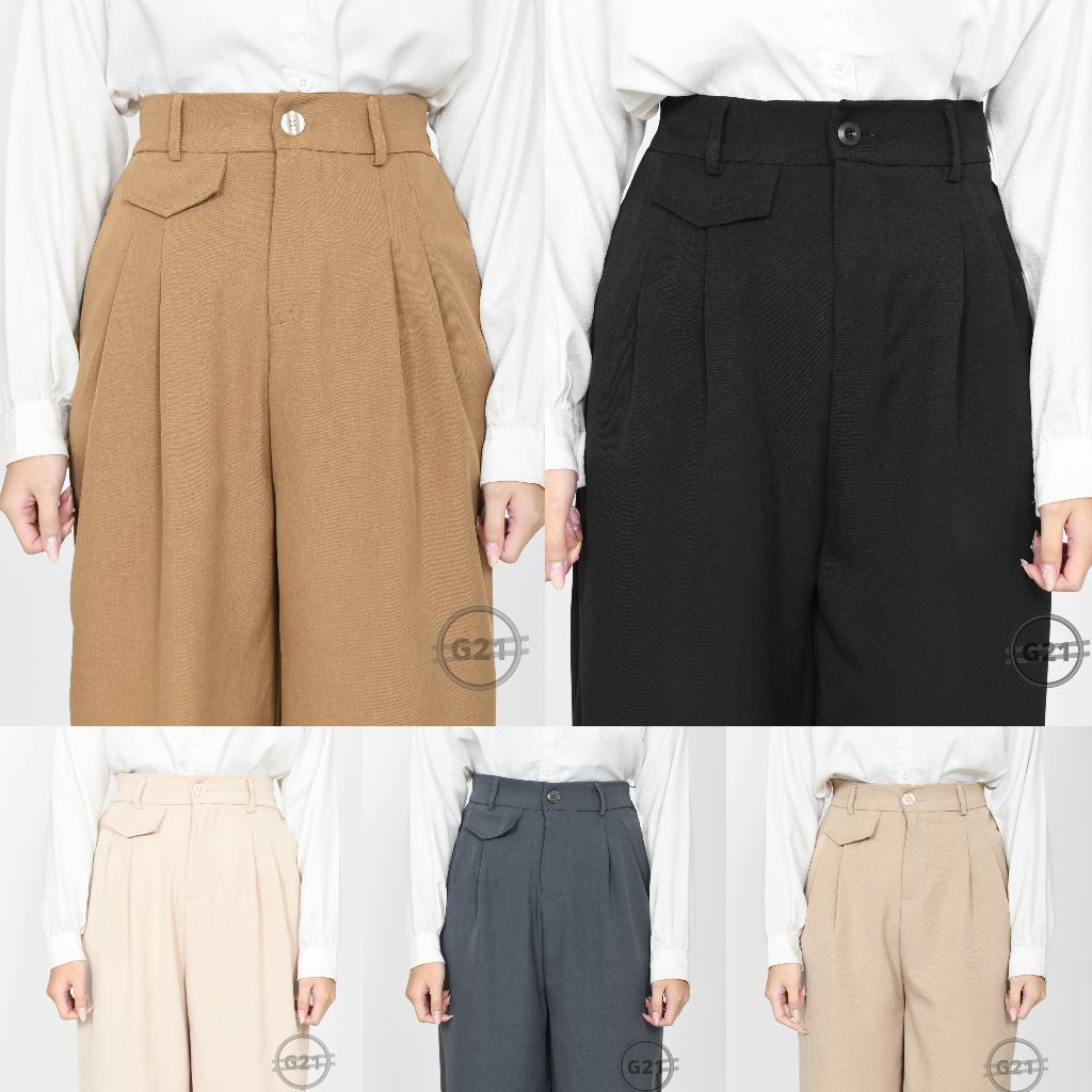 Celana Kulot Kerja Kantor dan Kasual Wanita Panjang Model Pinggang Karet Belakang Hitam Bahan Formal Dasar Premium