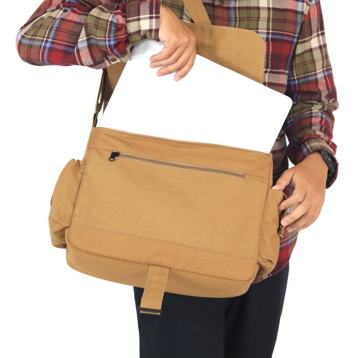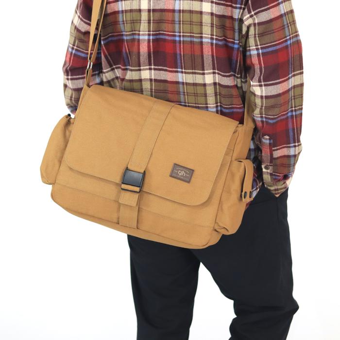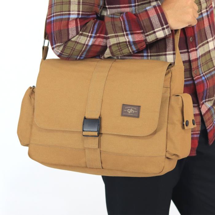 TERLARIS GHBAG TAS SLEMPANG LAPTOP MICHIGAN CANVAS MESSENGER BAG TAS KANVAS COKLAT