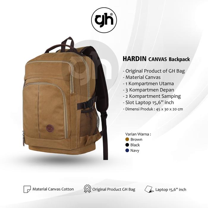 TERLARIS GHBAG TAS RANSEL SEKOLAH KERJA TAS LAPTOP HARDIN DOLIN CANVAS BACKPACK PRIA COKLAT