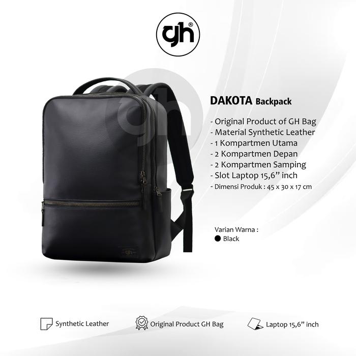 TERLARIS GHBAG TAS RANSEL KULIT PRIA WANITA TAS LAPTOP DAKOTA BACKPACK NEW ARRIVAL HITAM