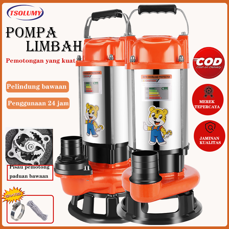 Tsolumy Pompa Celup Air Kotor 400W-1500W Stainless Steel Pompa Penghisap Air Lumpur Mesin Pemotong