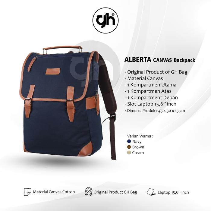 TERLARIS GHBAG TAS RANSEL SEKOLAH KULIAH TAS LAPTOP ALBERTA CANVAS BACKPACK UNISEX WANITA BROWN