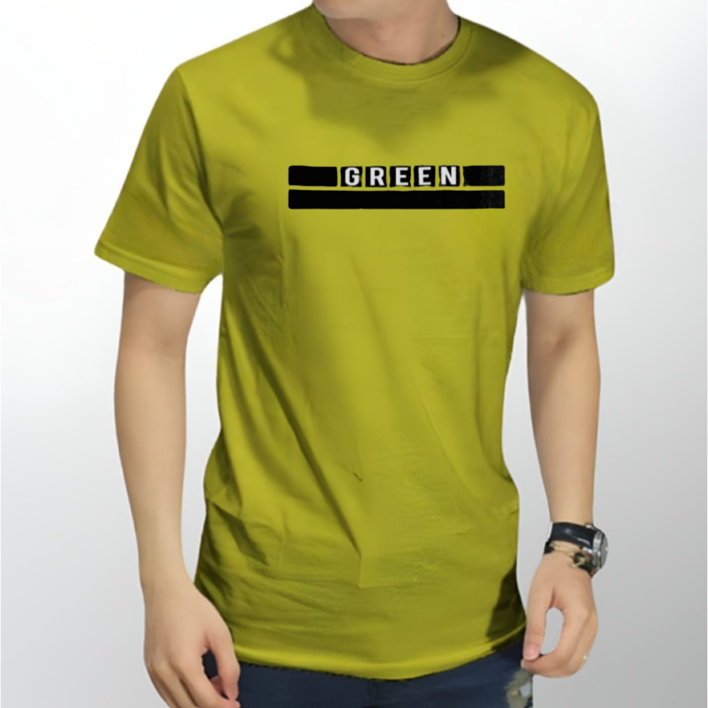 Kaos Pria Distro Lengan Pendek Bahan Katun Premium Motif Green Baju Cowok Dewasa Original Size M-3XL