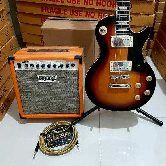 Paket lengkap mantap Gitar gibson lespaul sunbrust plus ampli dan kabel jack -