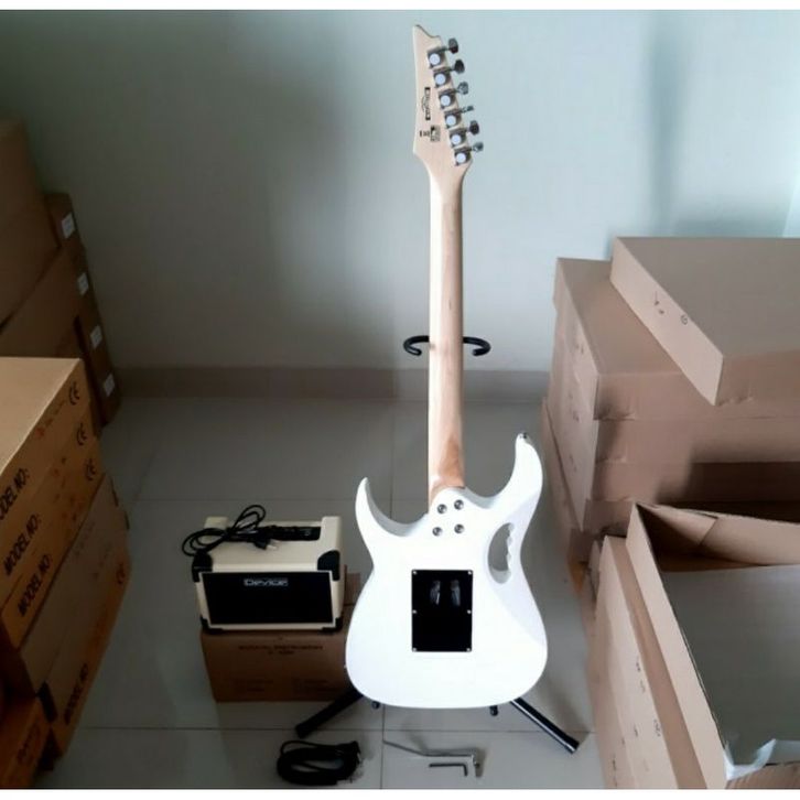 Gitar Ibanez JEM Flower White Plus Ampli Dan Kabel Jack Paketan