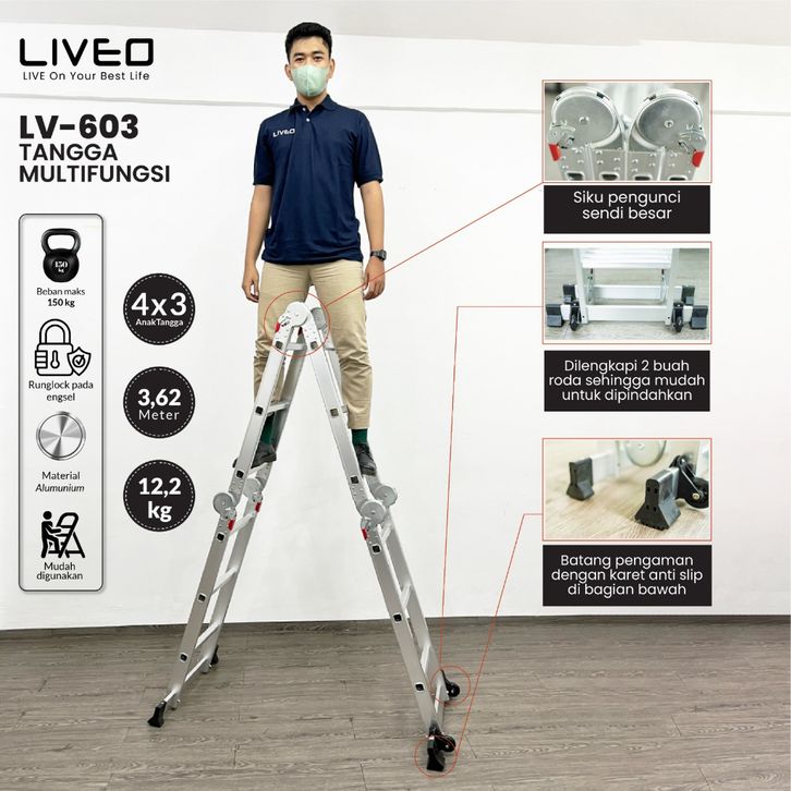 LIVEO Tangga Lipat Alumunium Multi Purpose Liveo LV-603 / Tangga Serba Guna / Tangga Multi Guna