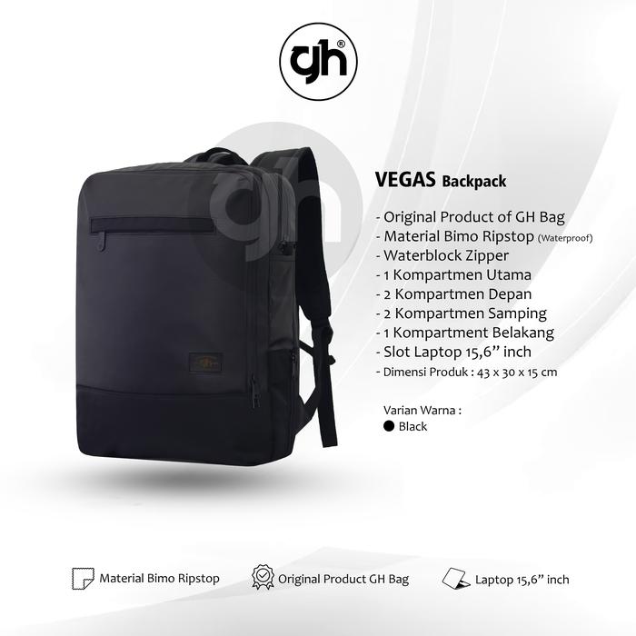 TERLARIS GHBAG TAS LAPTOP KULIAH KERJA TAS SEMINAR VEGAS BACKPACK WATERPROOF SEKOLAH HITAM