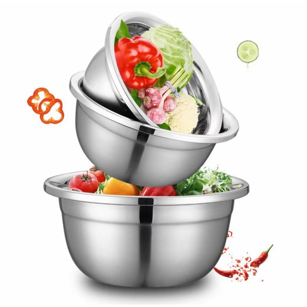 BMW Kitchenware - 3 PCS Baskom SUS 304 Ukuran 36, 38, 40 CM Bahan Stainless Steel Premium Free 1 Pcs Irus Tebal Baskom S