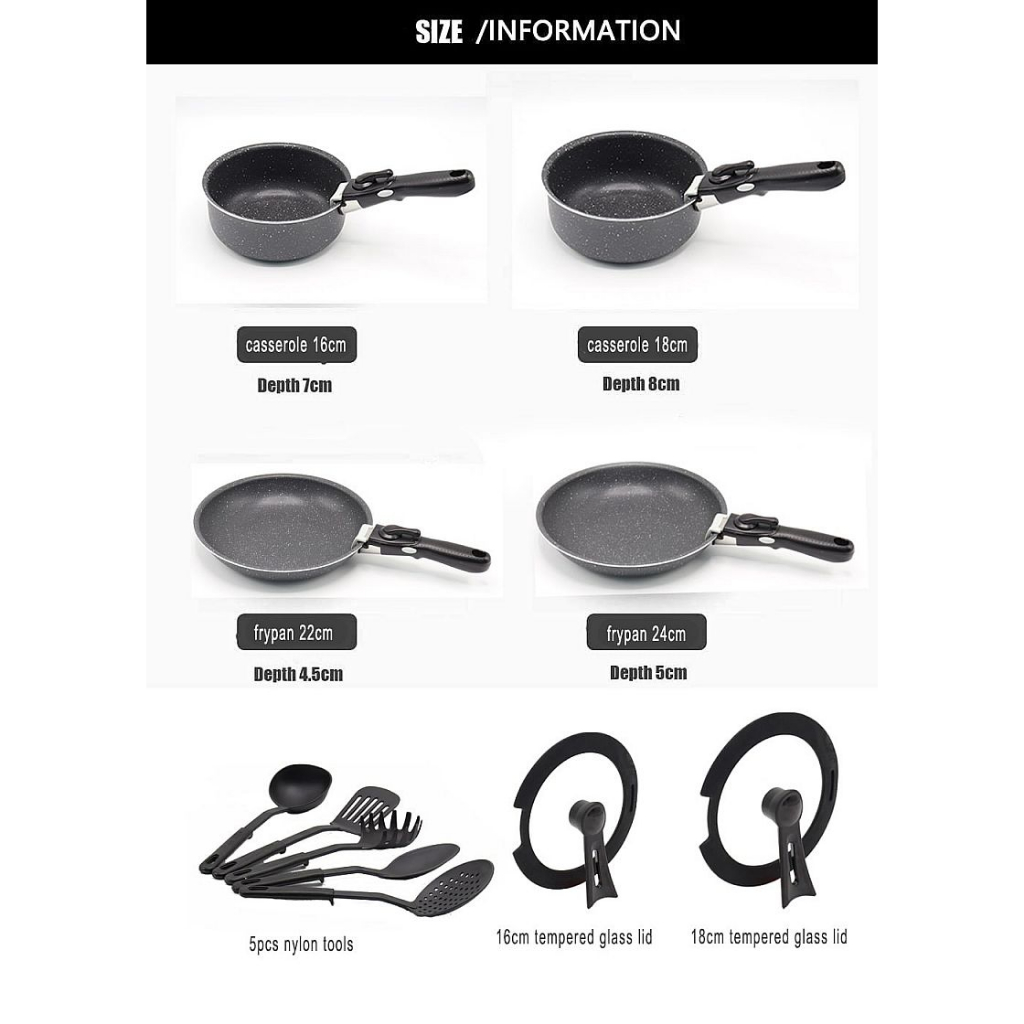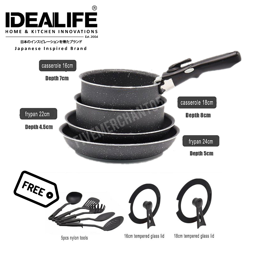 Panci Set Granite IDEALIFE IL 22A Cookware Marble IL 22 A Fry Pan Casserole Teflon Non Stick Anti Lengket Alat Masak Pan