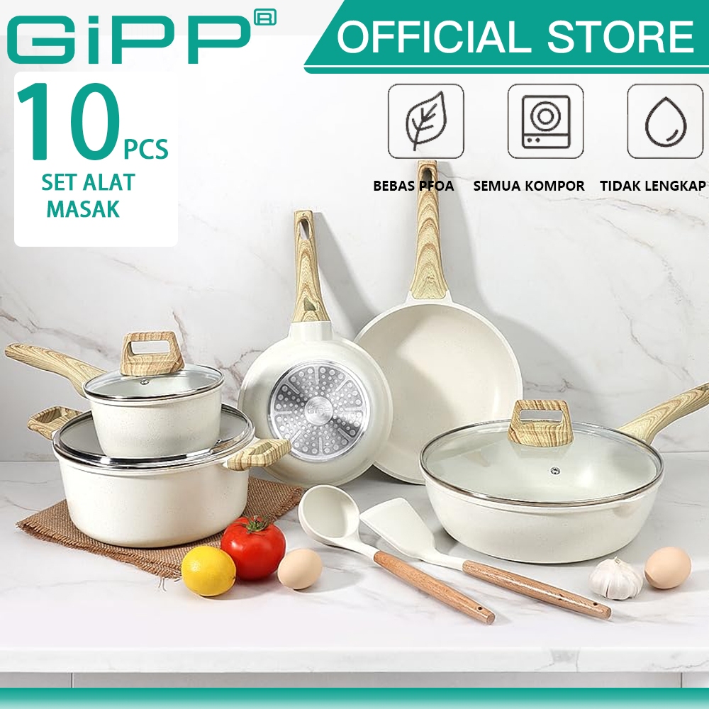 GIPP® Peralatan masak dapur anti lengket set 10 buah penggorengan Wajan die-cast Cocok untuk semua Kompor