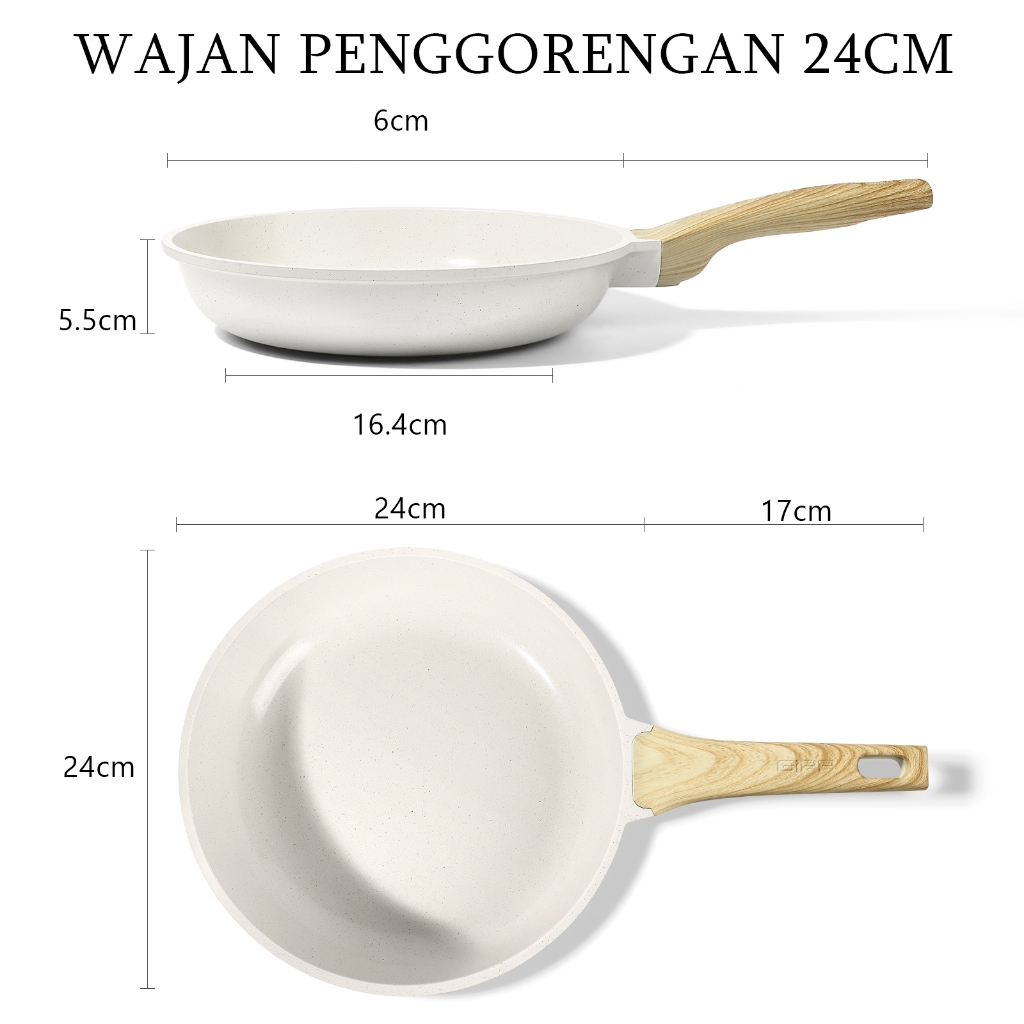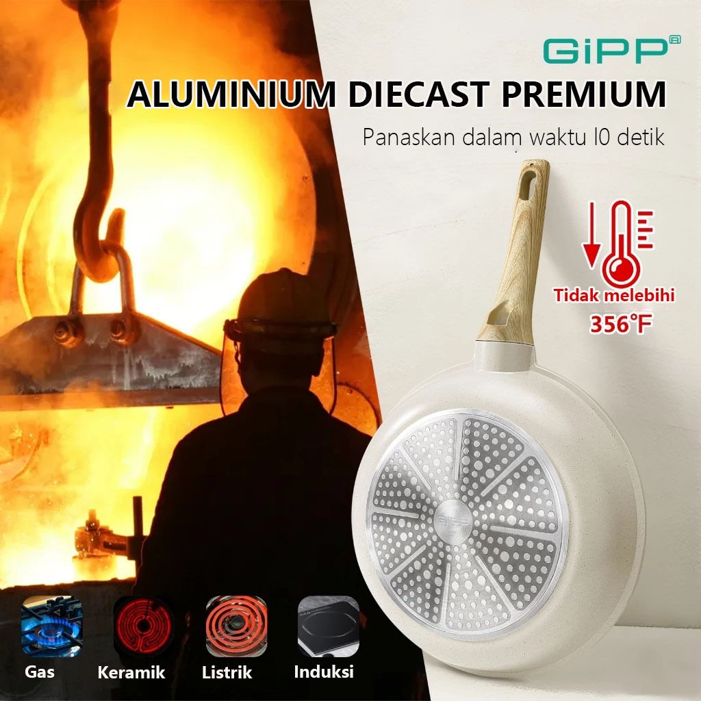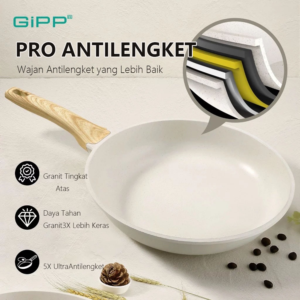 GIPP Wajan Penggorengan Anti Lengket Kawali 20/24 Cm Masak Serba Guna Cocok untuk Semua Kompor Bebas PFOA