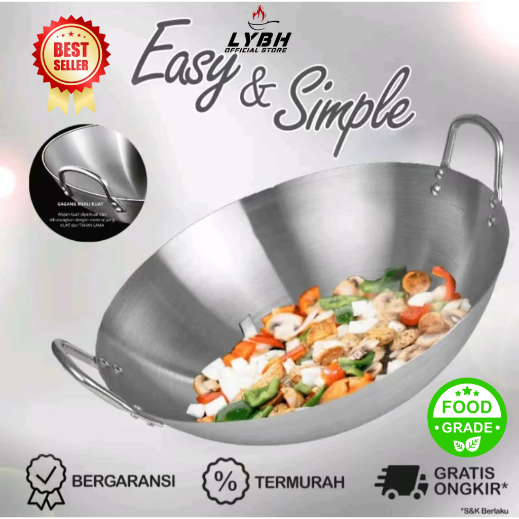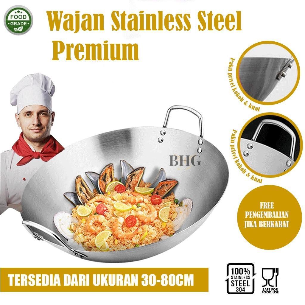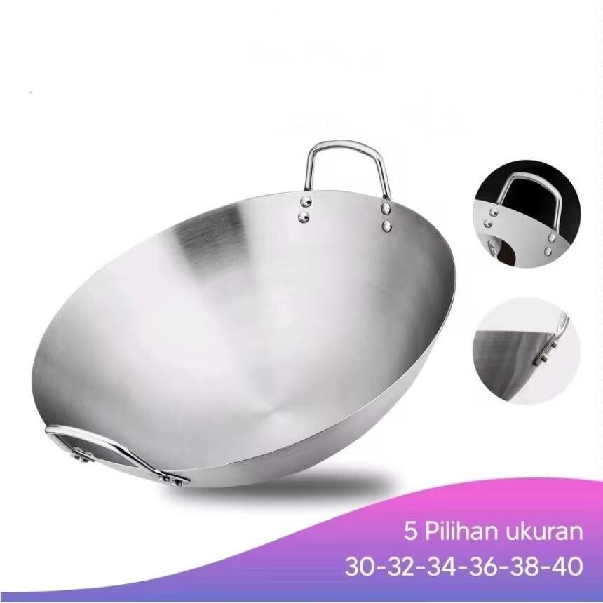 【Wajan】 penggorengan stainless steel tebal dengan dua pegangan, dasar bulat, seluruhnya terbuat dari baja, cocok un