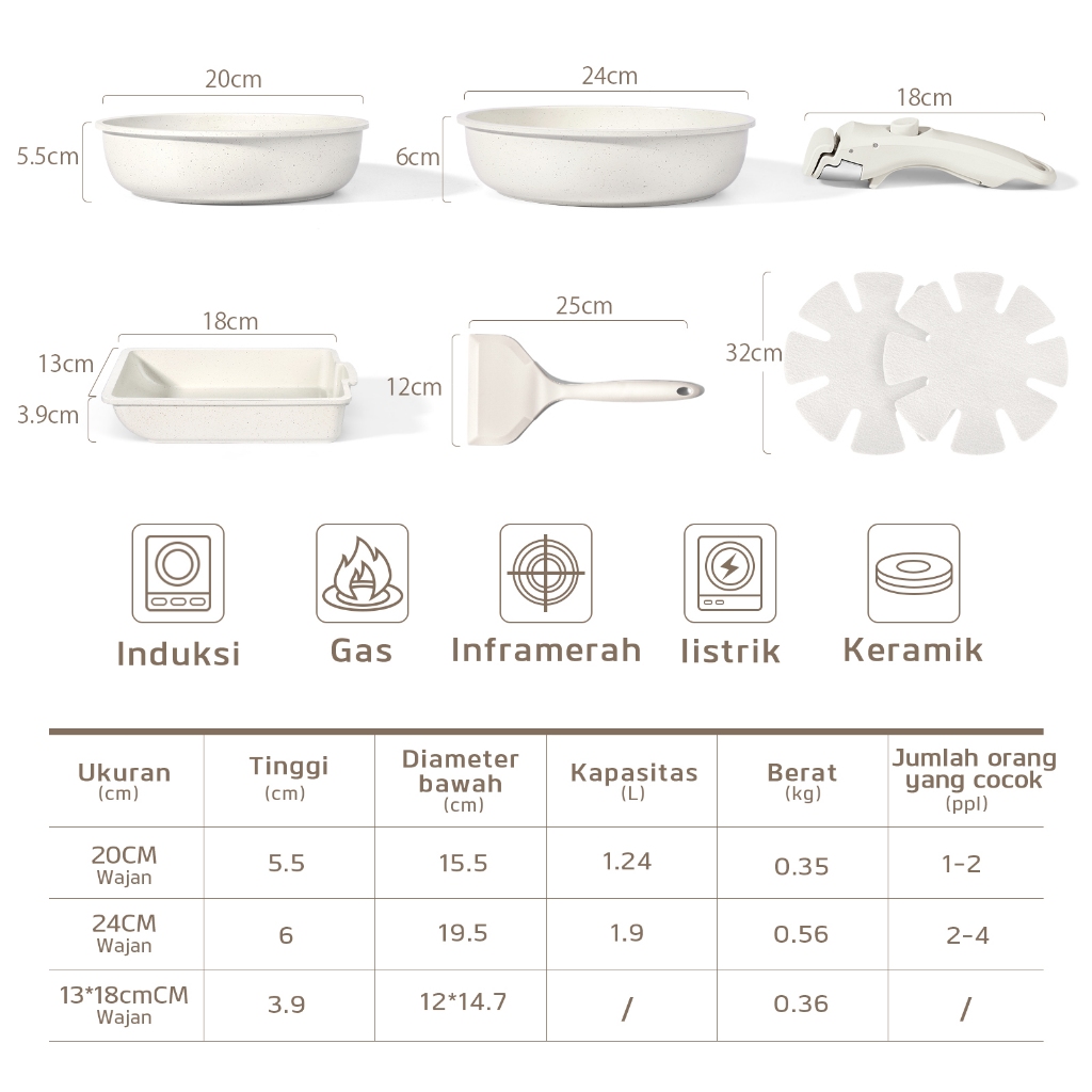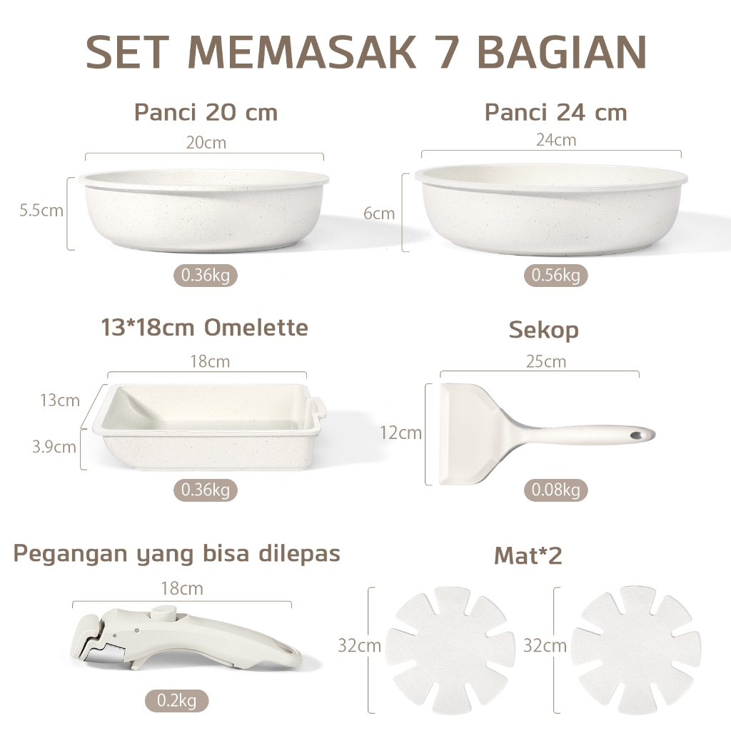 Gipp Peralatan Masak Set 7 Pcs Wajan Panci 20/24 cm Anti Lengket Lapisan Granit Alat Masak Lengkap