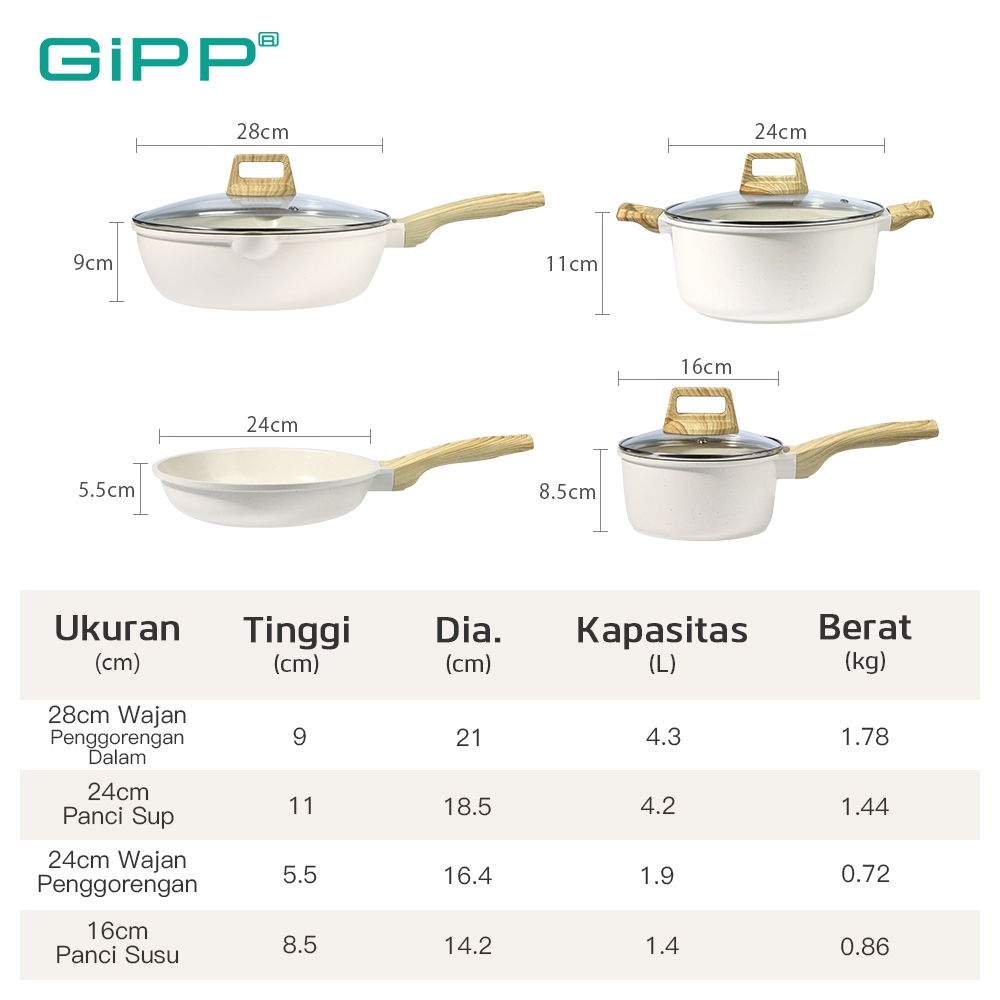 GiPP Peralatan masak antilengket set PFOA GRATIS Cocok untuk semua set Kompor (14 buah)