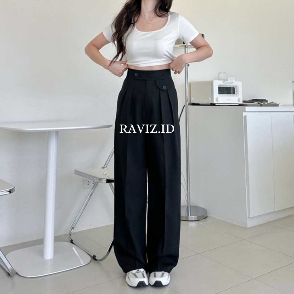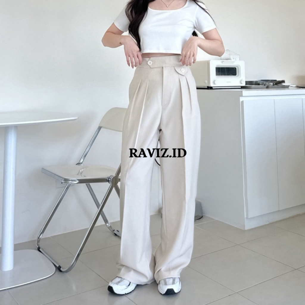 Raviz - Celana Kerja Panjang Wanita Kantor Loose Pants Celana Bahan Wanita Terbaru Jinny Pants