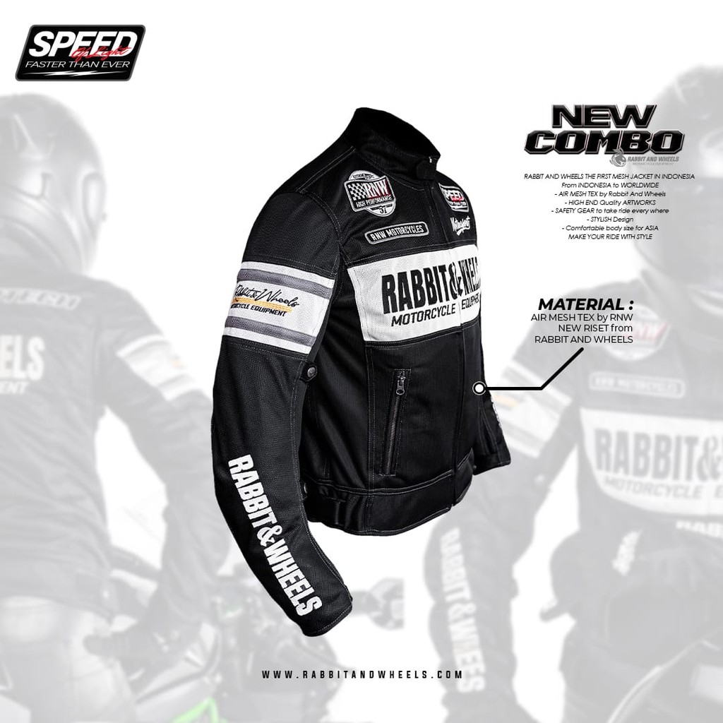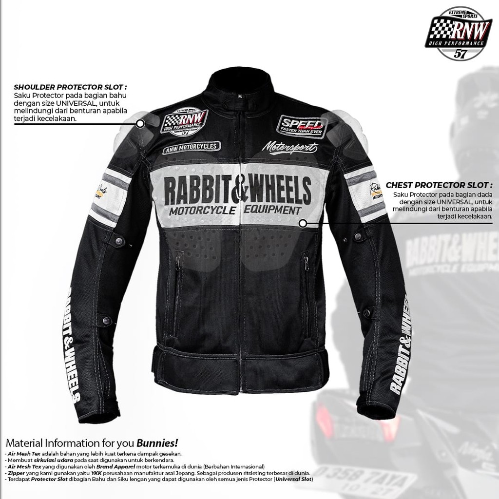 Jaket Motor Pria New Combo "Black" Rabbit And Wheels Jaket Riding S - Xxxl Original