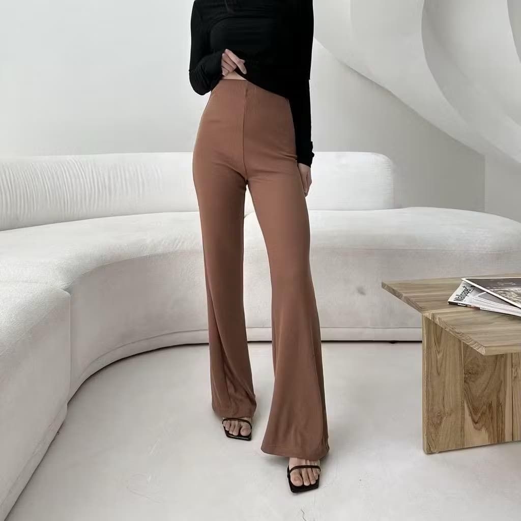 Celana Panjang Cutbray Knit Wanita Long Cullote Pants Highwaist Loose Flare