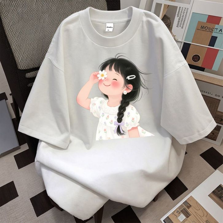 Jessica Tshirt lengan Pendek Baju Kaos Oversize Terbaru Korean Style Motif Gambar Cute Girl Kepang Bahan 100% Cotton