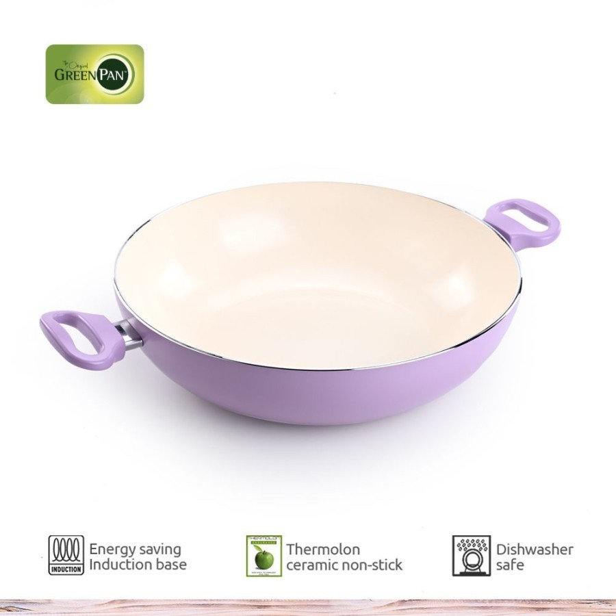 Wajan Penggorengan Anti Lengket GreenPan Delight Lavender Open Wok 32 cm / 5.43L