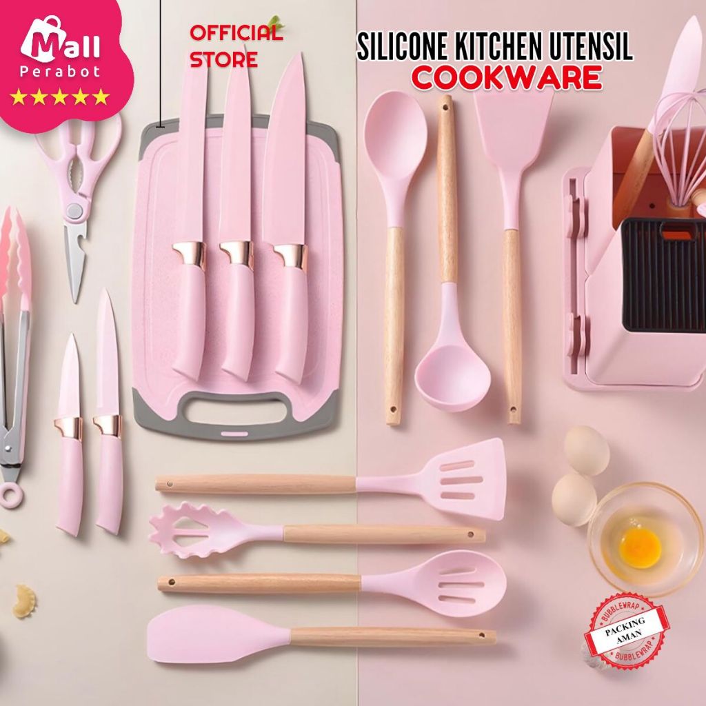 Mall Perabot | Set Alat Dapur Spatula Silikon | Sutil Silicone Kitchen Set 19 In 1 Spatula Tahan Panas Free Wadah