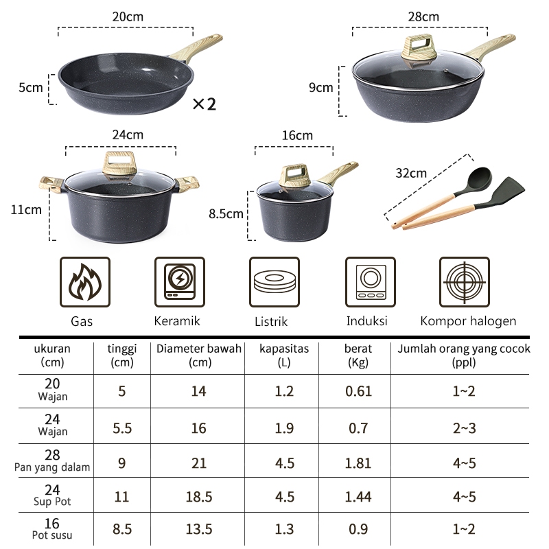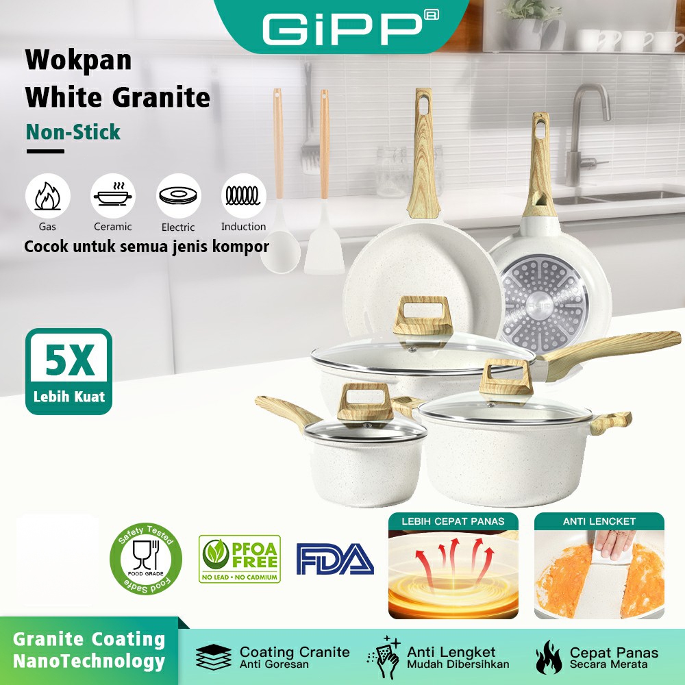 Gipp Peralatan Masak Anti Lengket Set Granit 10Pcs (5pan+3tutup+2alat) Cocok Untuk Semua Kompor