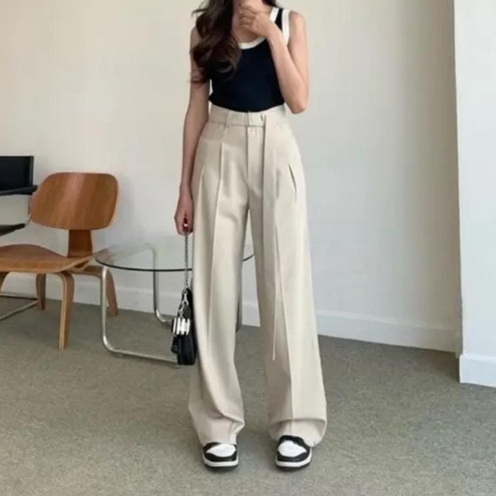 OBI PANTS Celana Kulot Highwaist Wanita - Anti Kusut - Loose Pants Panjang Bahan Kerja Kantor Formal