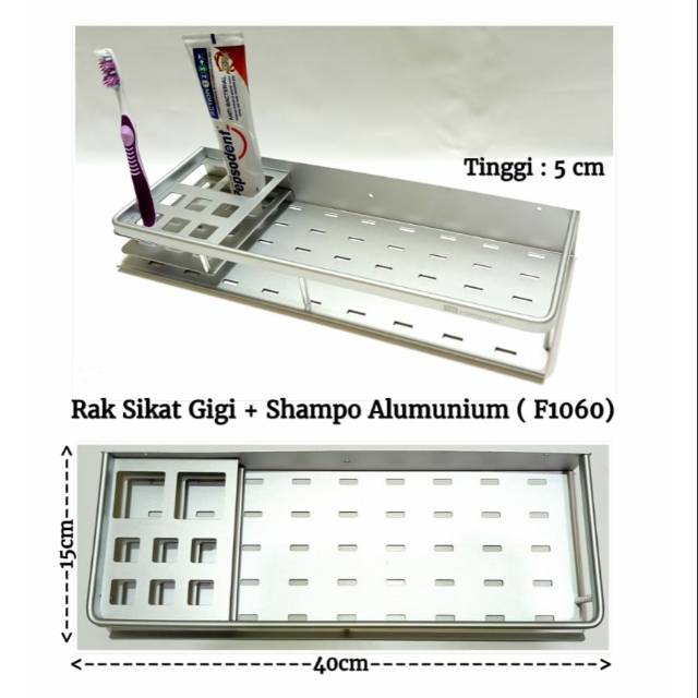 Rak Kamar Mandi Aluminium F1060 Multifungsi / Rak Sikat Gigi / Rak Sabun / Tempat Sampo