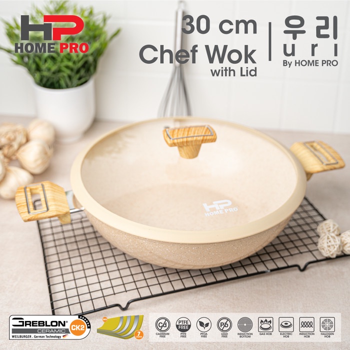 Uri Series Granite Ceramic Chef Wok 30 cm with Lid Wajan Anti Lengket