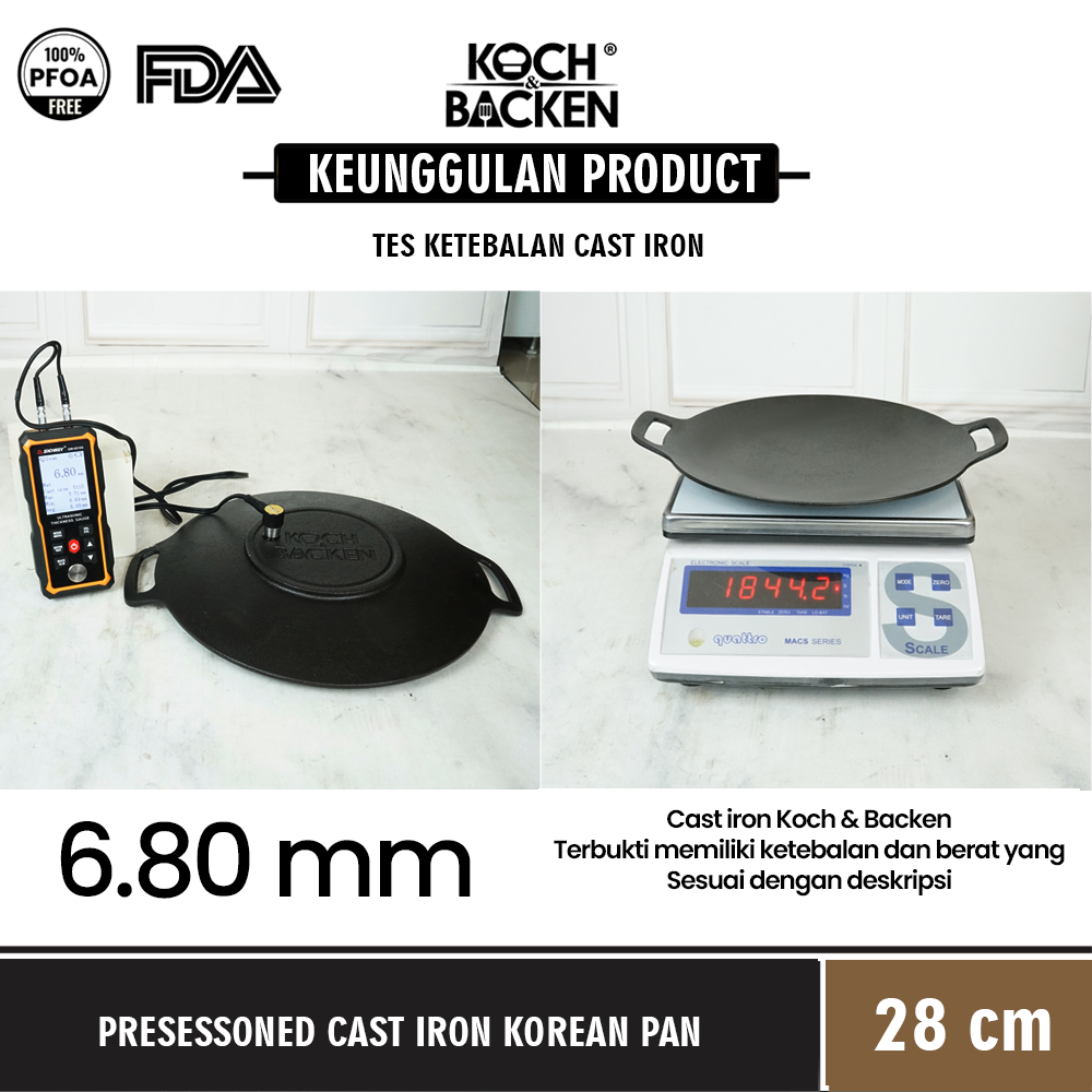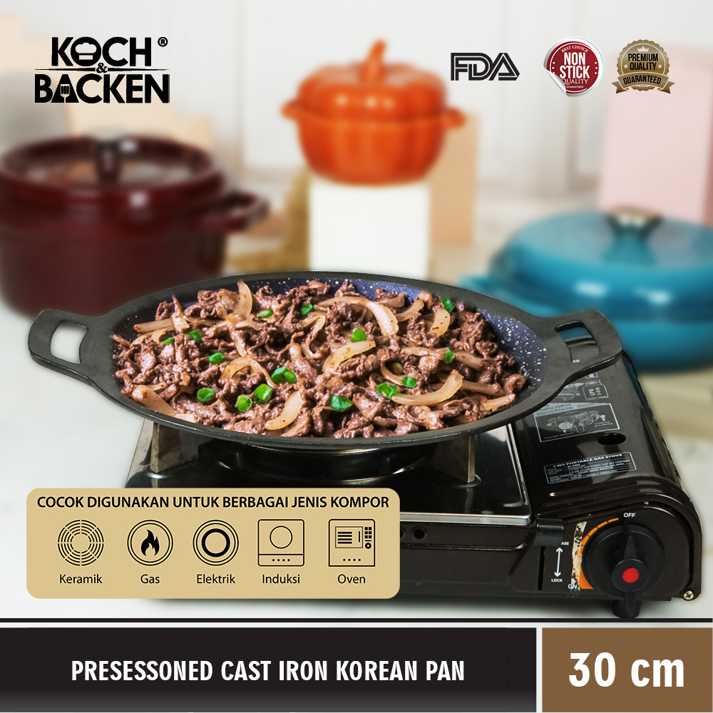 KOCH&BACKEN Wajan Penggorengan Martabak Cast Iron Pan Besi Cor 28cm - Anti Lengket
