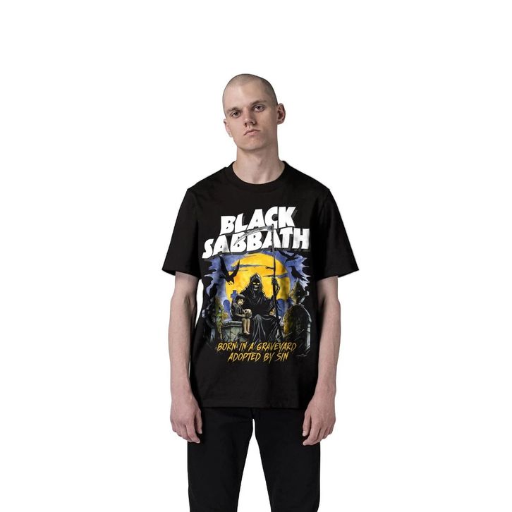 Kaos Tshirt Black Sabbath Born In Graveyard Baju Premium Pria Wanita Cotton 24 S Basic Tee Hitam Lengan Pendek Terbaru