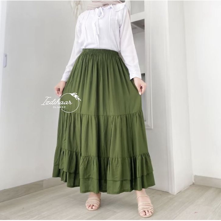ANNYA KAWAI SKIRT ROK Ruffle flowy wanita cantik katun rayon