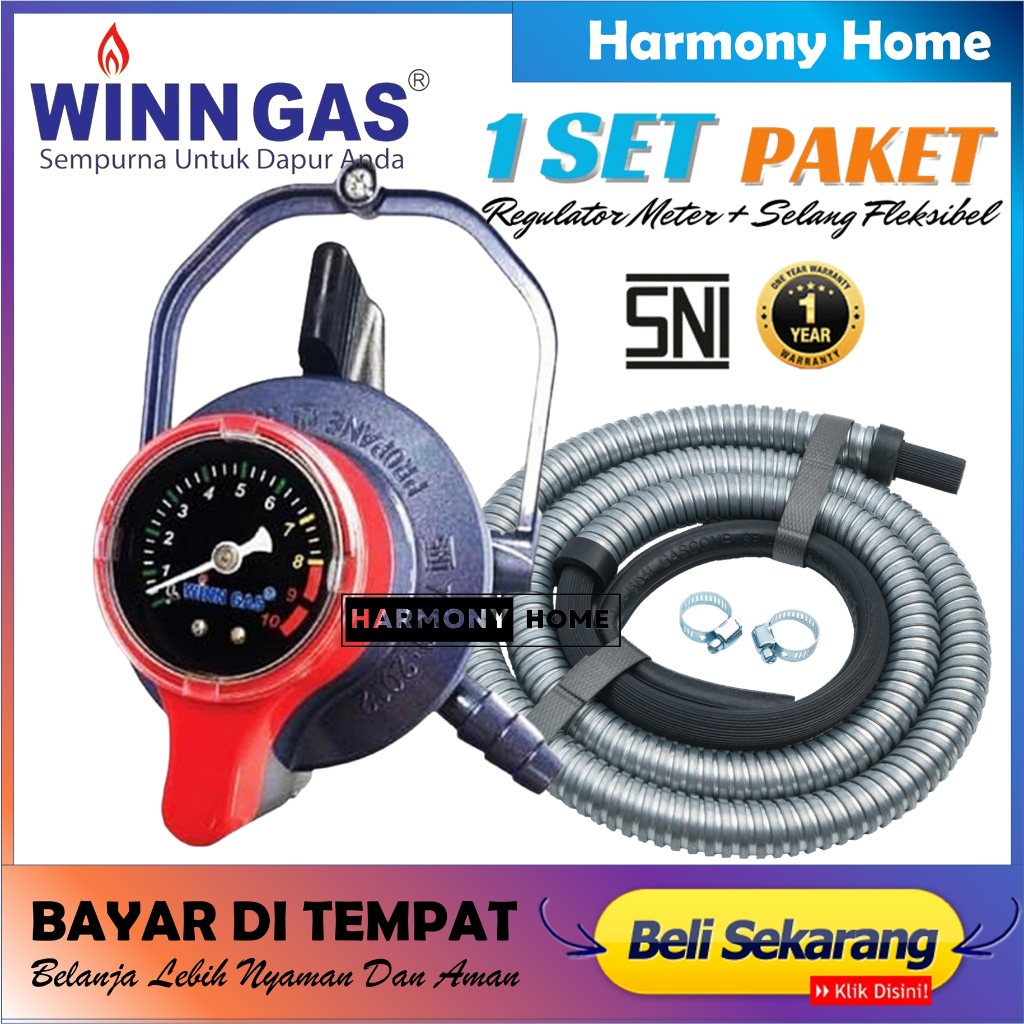 Regulator Winn Gas W-900 M+Selang Gas Fleksibel Metal+Klaim Gas Regulator Teknan Rendah Pengnci Gnda