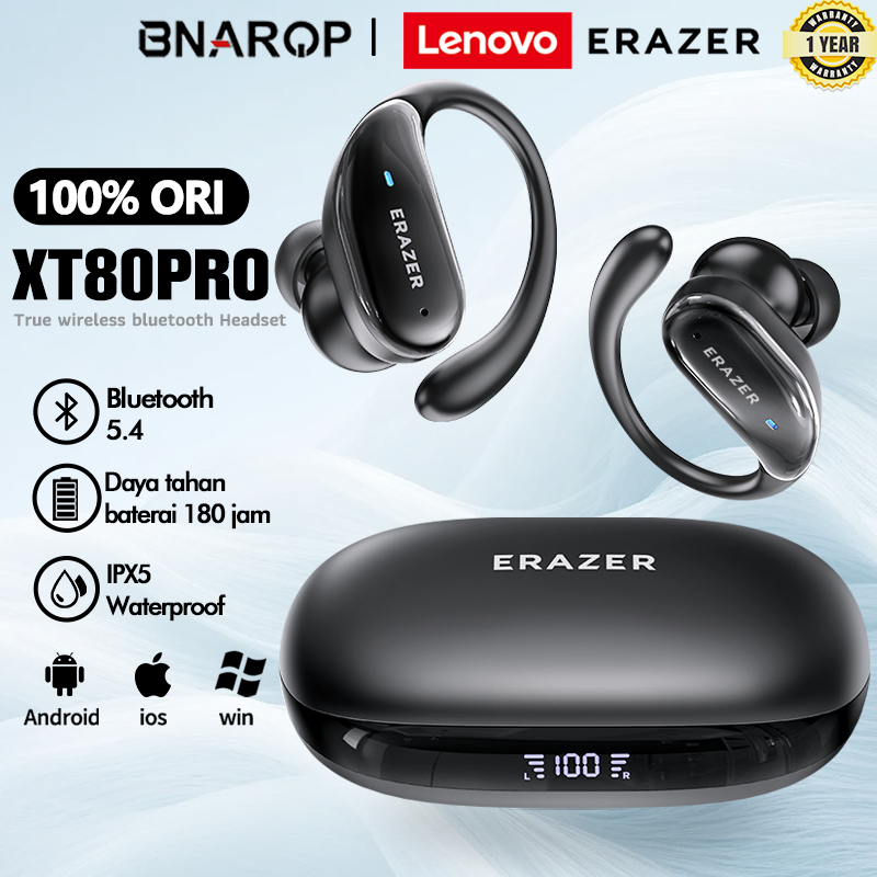 BNARQP X LENOVO ERAZER XT80PRO EARPHONE BLUETOOTH V5.4 TRUE WIRELESS TWS WATERPROOF SPORTS ORIGINAL OFFICIAL STORE