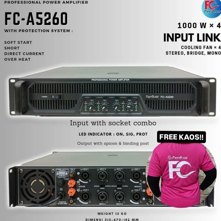 Power Amplifier Firstclass 5260 | Power Ampli 1000 Watt x 4 | FC A5260 4CH 4 Channel