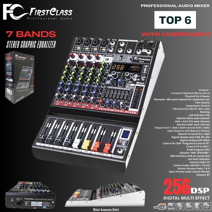 BARU... 6ch Mixer Audio 6 Channel dengan Kompresor Firstclass TOP 6 | Mixer 6 Channel 6 ch compressor TOP6 256 Dsp